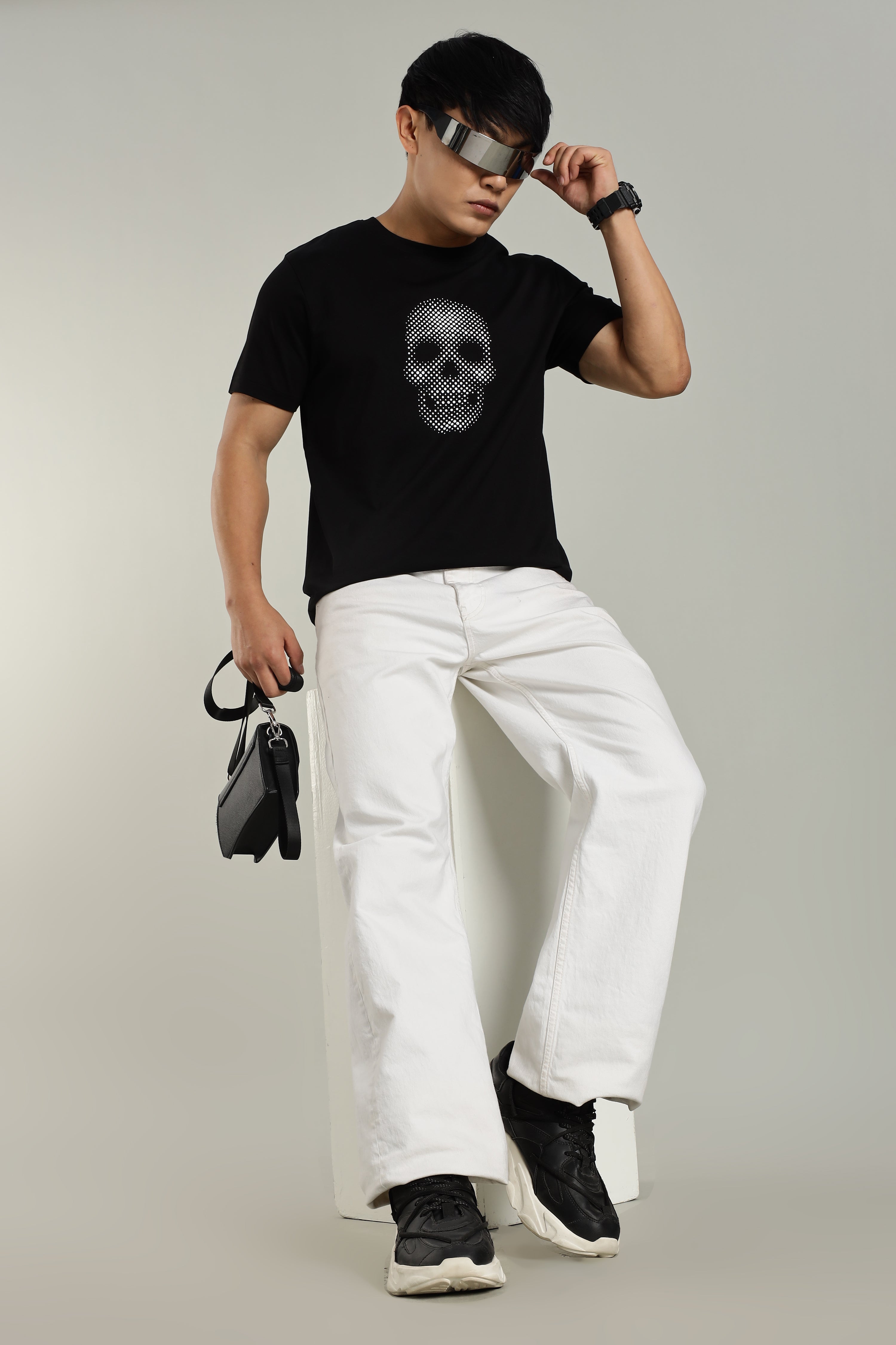 Black Supima Cotton Glossy Skull T-Shirt for Men